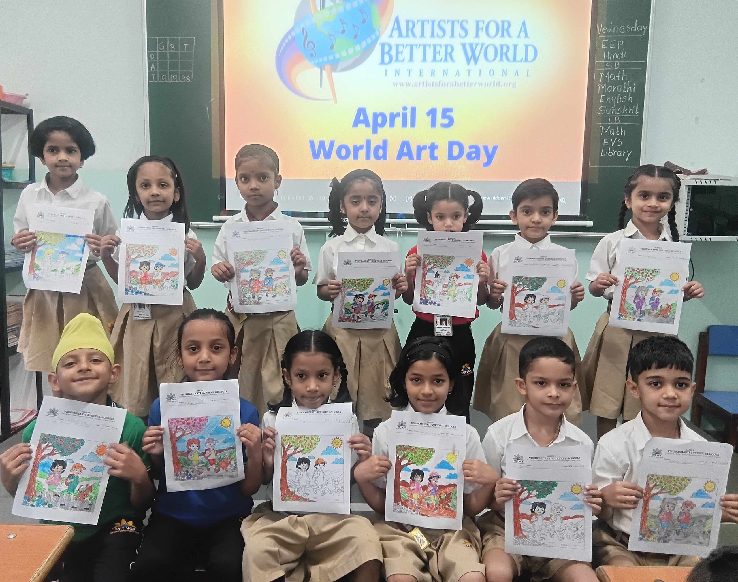 A vibrant atmosphere marked the celebration of World Art Day at MIT Vishwashanti Gurukul School, Kothrud as students participated in artistic activities. The day reflected joy, imagination, and appreciation for art as a form of expression.